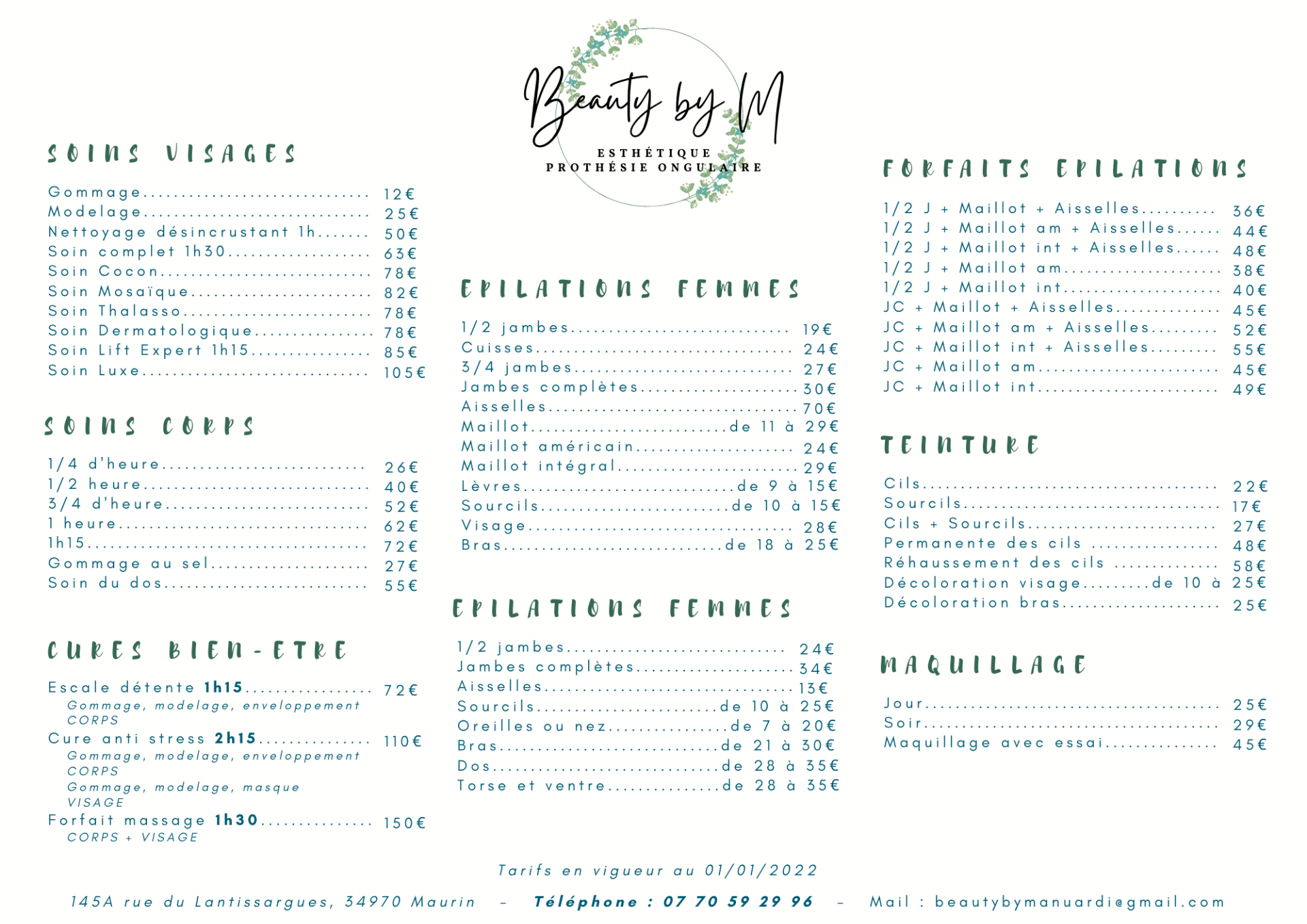 TARIFS ESTHÉTIQUE