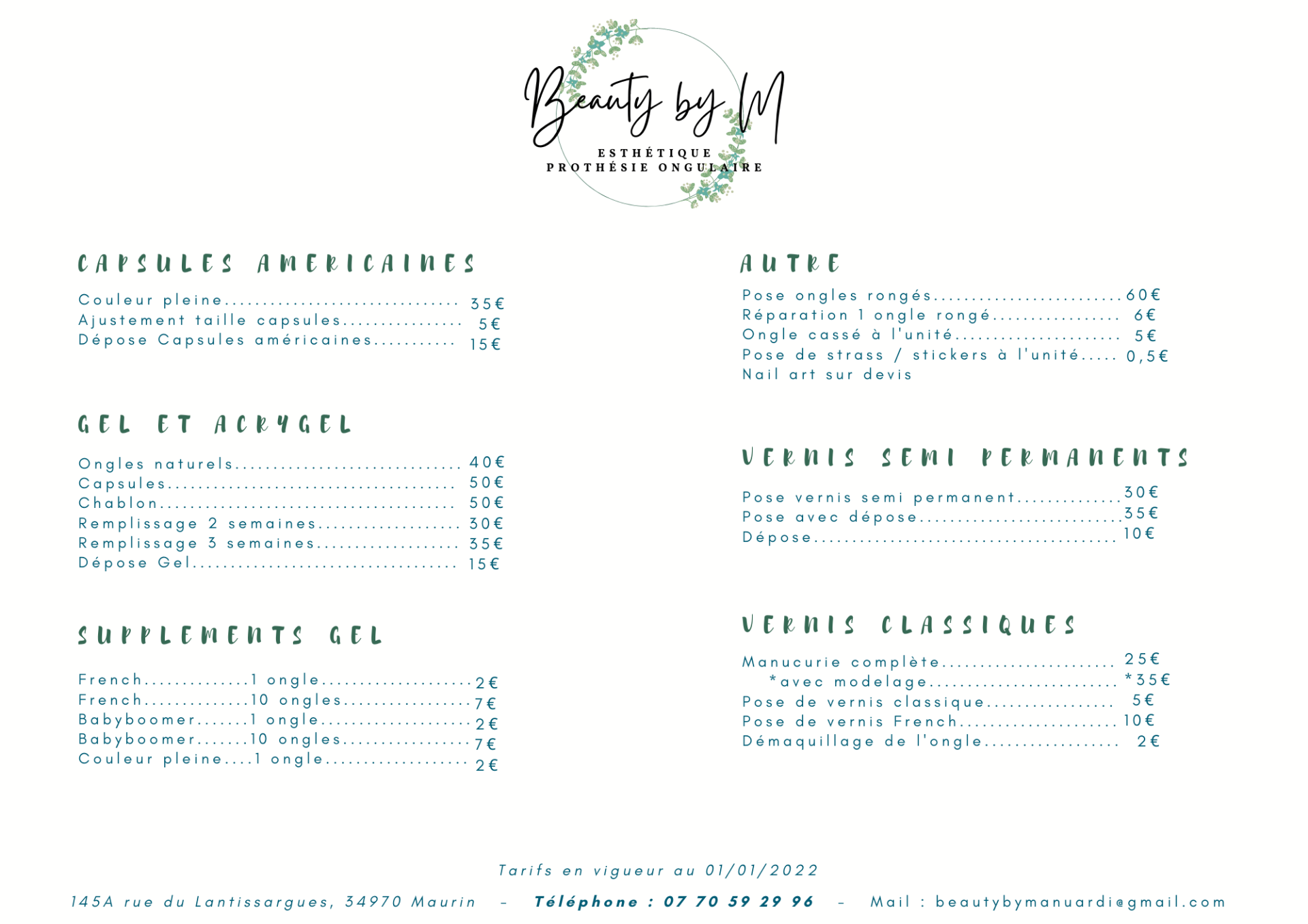 TARIFS PROTHÉSIE ONGULAIRE